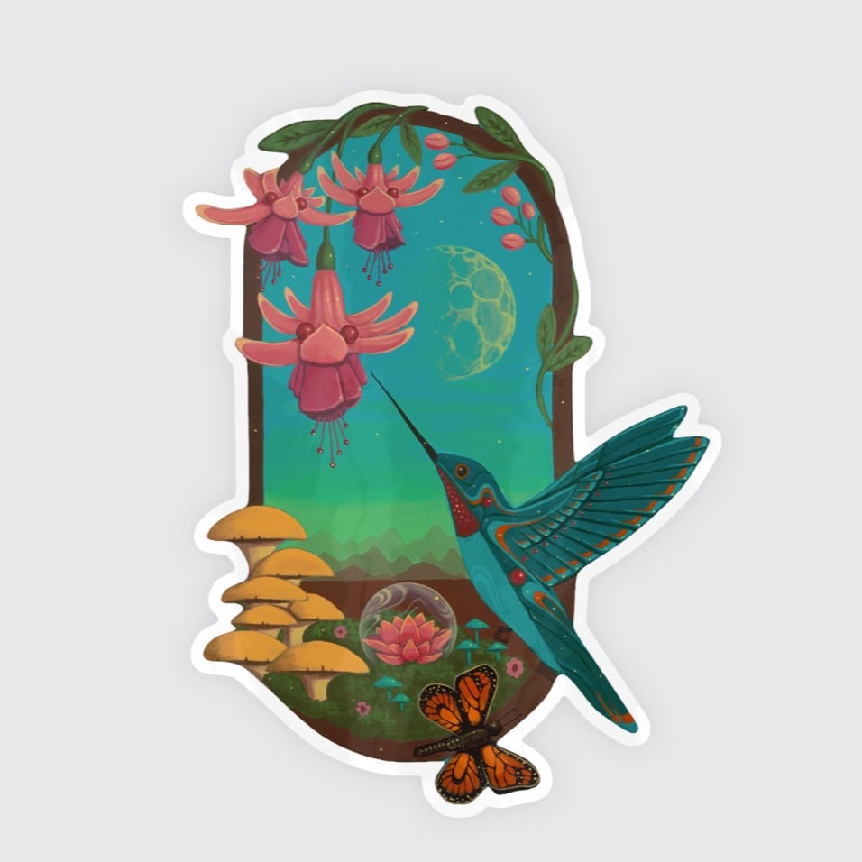 "Hummingbird and Fuchsia" Sticker